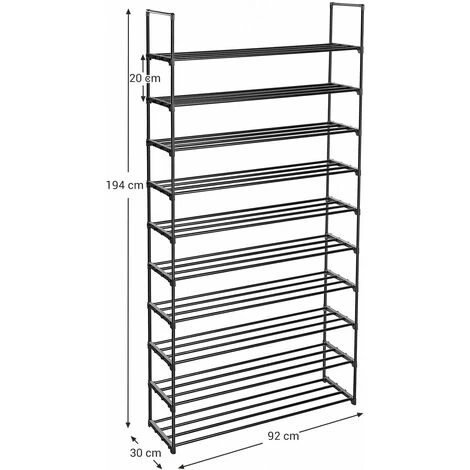 Songmics Schuhregal Mit 10 Ebenen, Schuhaufbewahrung Aus Metall, Für Bis Zu 50 Paar Schuhe, Schuhorganizer Für Wohnzimmer, Flur Und Ankleidezimmer, 92 X 30 X 194 Cm, Schwarz LSA10BK
