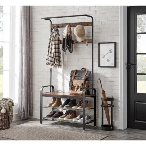 - Was Sie bekommen: Einen Garderobenständer aus unserer DAINTREE-Kollektion, der über eine Schuhbank, 2 Gitterablagen, mehrere Haken sowie einen Kippschutz für mehr Sicherheit verfügt!