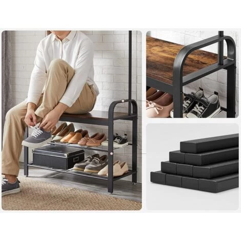 Für zusätzliche SicherheitMit dem beliegenden Kippschutzteilen können Sie den Garderobenständer an der Wand befestigen, was eine sichere Nutzung gewährleistet. | Für zusätzlichen StauraumDie Schuhbank ist extra lang (84 cm) und bietet Ihnen viel Platz, um Ihre Schuhe aufzubewahren. Je mehr Stauraum, desto besser! | Für eine gute StabilitätDiese Garderobe glänzt mit einer robusten Struktur und verfügt über eine gute Stabilität. Ihre Schuhe können Sie beruhigt auf der Bank anziehen. |