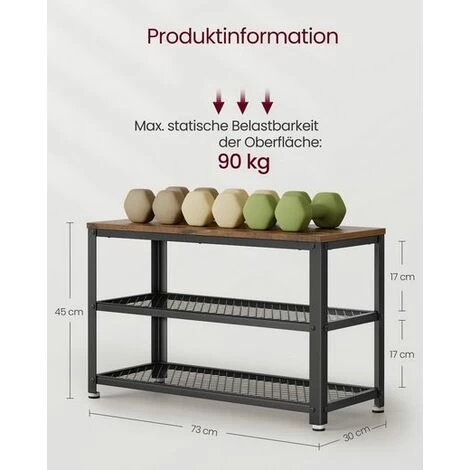 - BESTÄNDIGES DESIGN: Aus hochfesten Holzspanplatten und Metall gefertigt, trägt diese stabile Schuhbank bis zu 90 kg. Warum setzen Sie sich also nicht, um Ihre Schuhe anzuziehen oder auf Ihre Begleitung zu warten?