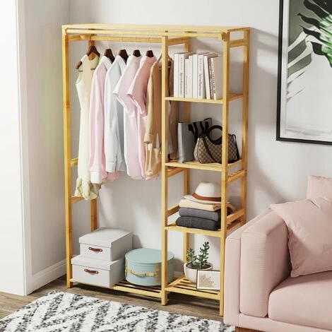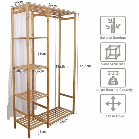 【Verwendung】Mit dem Naturfarbe können Sie den Kleiderständer überall verwenden, im Wohnzimmer, Schlafzimmer, Badezimmer, Kinderzimmer, Flur oder Büro. Saprt merh Platz und macht das Zimmer ordentlich.Mit hängendem Vorhang wird Ihr Artikel effektiv vor Staub geschützt.