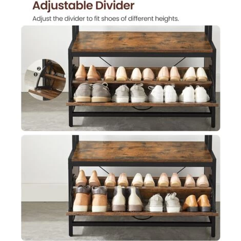 - Stabil: Durch die Konstruktion aus Stahl und Spanplatten und V-Streben an der Rückseite ist dieser Garderobenständer robust und stabil (Sitzbank bis 100 kg belastbar). Setzen Sie sich einfach auf die Bank, um Schuhe bequem anzuziehen
