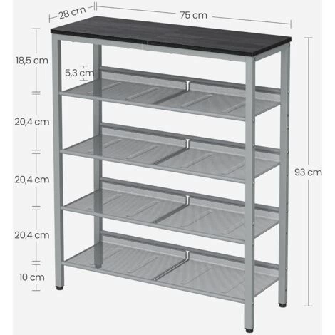 - [Für mehr Schuhe] 4 Gitterablagen und eine Oberplatte bieten genügend Platz für 20-25 Paar Schuhe. Mit einem Abstand von 20,4 cm zwischen den Ablagen können Sie sogar High Heels oder Stiefeletten auf dieser Schuhablage unterbringen