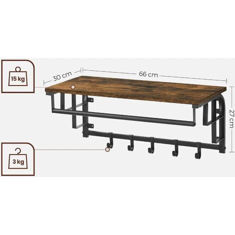 SeitenleistenKönnen zum Aufhängen von Regenschirmen und Hundeleinen verwendet werden. | Abnehmbare HakenAlle Haken sind abnehmbar, so können Sie sie dort verwenden, wo Sie sie gerade brauchen. | HängestangeDiese 60 cm lange Hängestange bietet genügend Platz, um Ihre Kleidung aufzuhängen. |