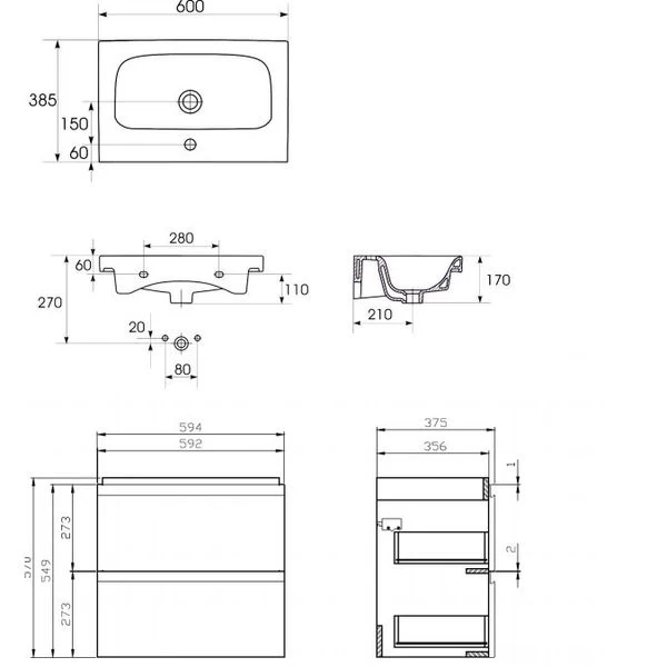 Waschplatz Mudo 60 Slim Weiß Hochglanz