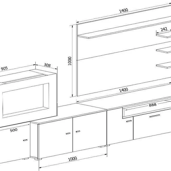 Das Wohnzimmer-Set misst: 290 cm (Breite) x 170 cm (Höhe) x 45 cm (Tiefe). Die Abmessungen des Schornsteins: 91 cm (Breite) x 56,5 cm (Höhe) x 32 cm (Tiefe). Aus hochwertigem Melamin, mattweiße Struktur, MDF-Fronten schwartz glänzend lackiert, wird Ihr Wohnzimmer viel Licht aufnehmen, ideal für jede