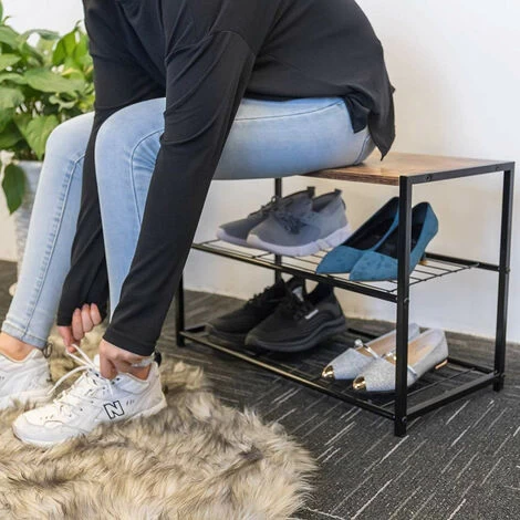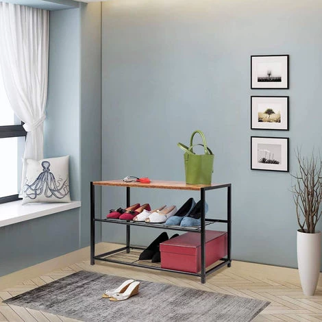 - Industrieller Retro-Stil: Dieses einfache Schuhregal kombiniertperfekt den modernen und den Retro-Stil. Die Kombination aus Vintage-Holzmaterial, dem schwarzen Metallrahmen und denschwarzen Gitterbödenlassen das Schuhregal schlichtund stilvoll aussehen